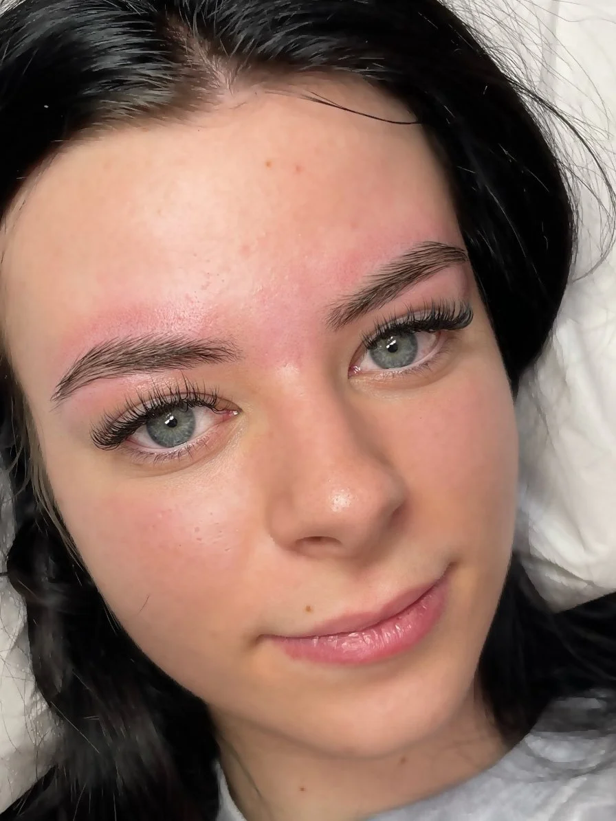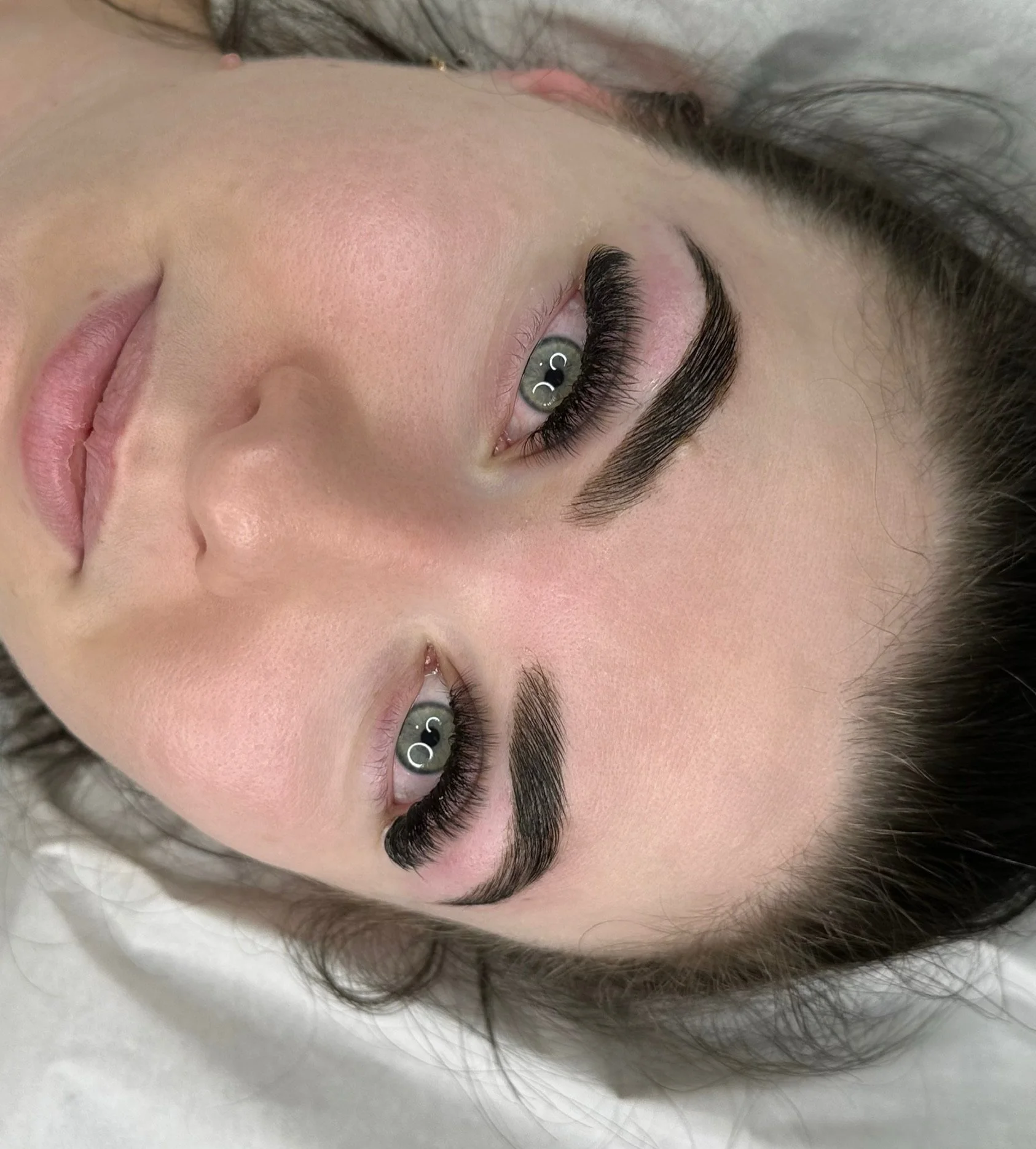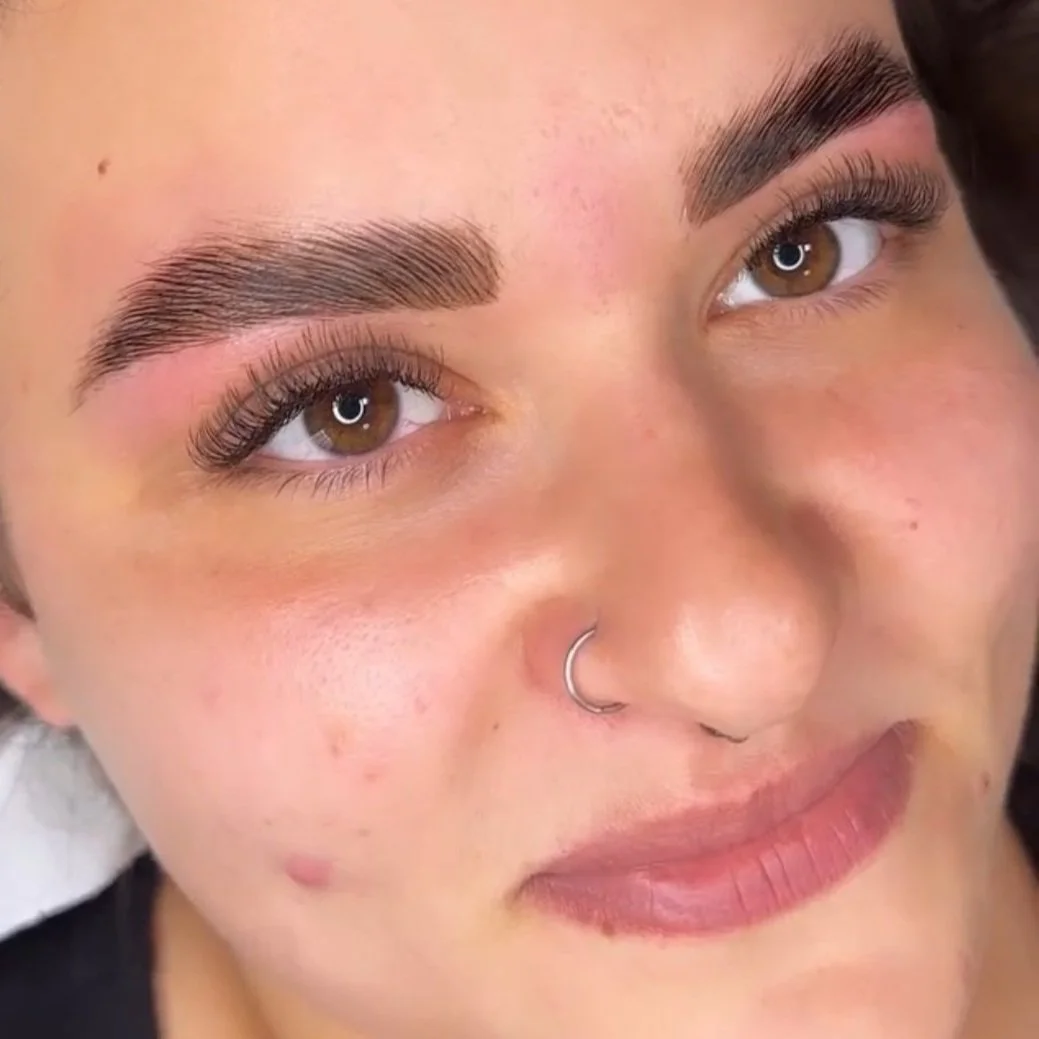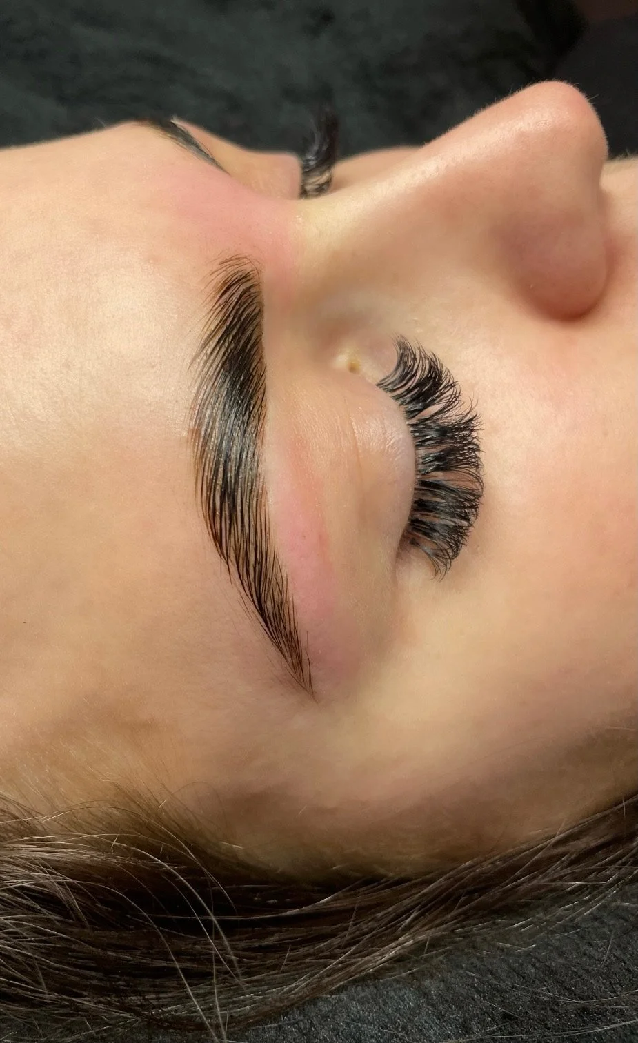 A brow perm that lifts eyebrow hairs to create a fuller, more even, and groomed look